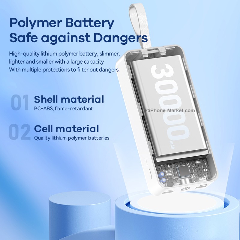 ظرفیت باتری 30000 میلی آمپر و نوع باتری لیتیوم پلیمر میباشد