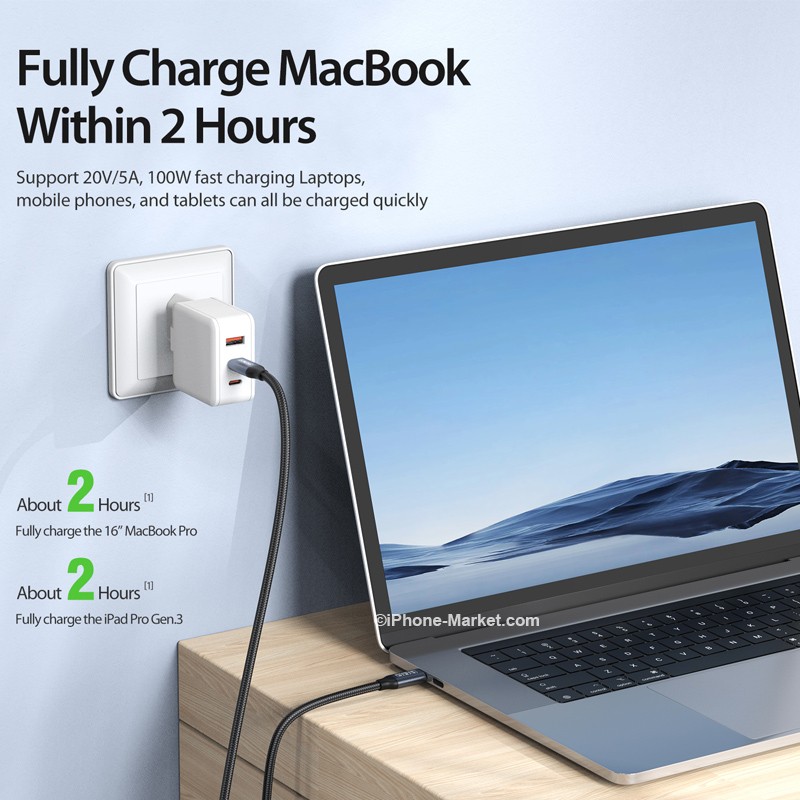 شارژ سریع 100 وات با پروتکل های شارژ 20W/27W/65W/100W سازگار است، حداکثر سرعت شارژ می تواند به 5A/100W برسد