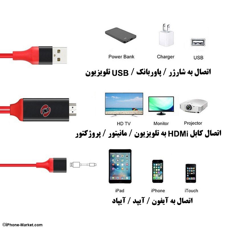 | قابل استفاده برای | انواع آیفون / آیپد با پورت لایتنینگ / آیپاد جهت اتصال به تلویزیون ، مانیتور و پروژکتور |